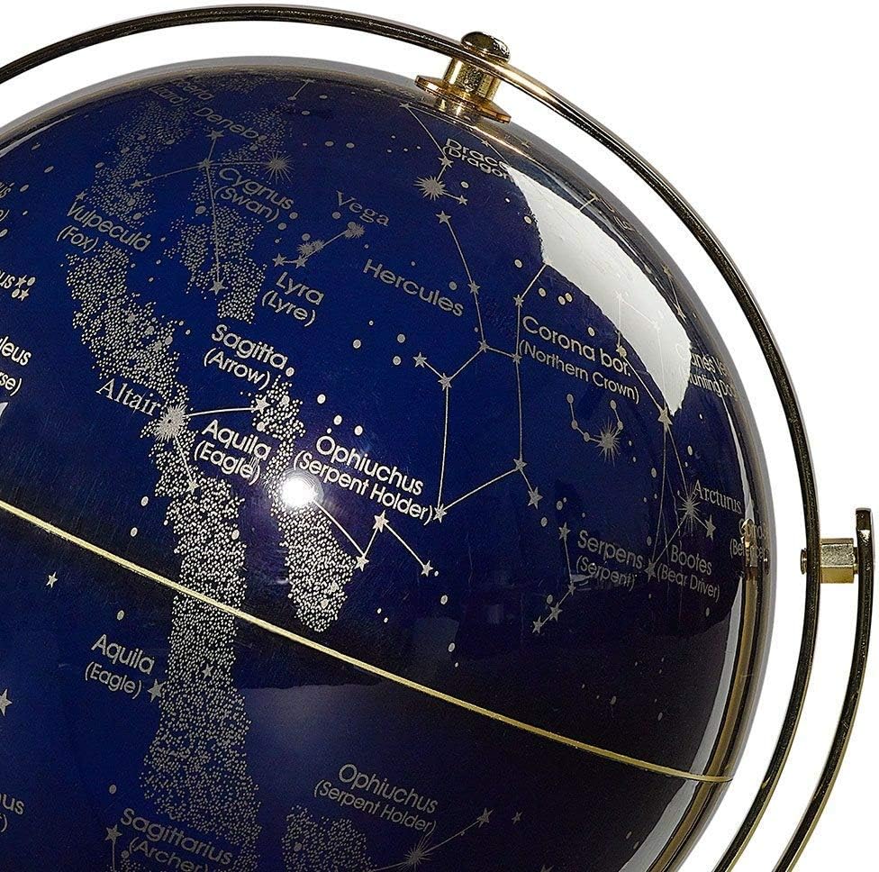 Koyu mavi bir gökyüzüne karşı parıldayan altın takımyıldızların büyüleyici kombinasyonu, bu küreyi herhangi bir masa, ev veya ofis için belirgin bir ek haline getiriyor.